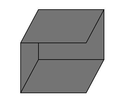 요건 육면체에서 면 두개를 뗀 모습이다. 이런 열린 모양의 오일러 지표는 어떨까? 위의 그림에서 계산해보면 정육면체에서 면이 두 개 없어지고 모서리가 하나 없어졌다. 그래서 $\chi =1$임을 알 수 있다. 일반화할 수 없을까? 당연히 할 수 있다. 진부하게 면이 어떻게 배치되어서 사이에 얼마나 많은 정점이 있고 얼마나 많은 선분이 있어서 이런건 넘어가자. 그런건 독자에게 연습문제로 남겨두겠다.